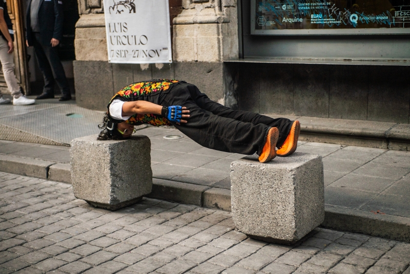 Based on the idea that these three concepts are a living archive to generate the content of hr work, this time she forms a team of German and Mexican dancers with very special characteristics to explore the public space in Mexico City.